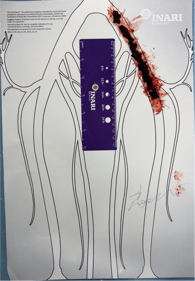 上述案例中的两位患者手术中失血少,取栓后,静脉管腔内血栓清除,静脉血流显著改善,取栓未见瓣膜损伤。两位患者术后当天均可下地正常活动,血液指标平稳恢复,术后第二天出院,随访显示已恢复正常生活。