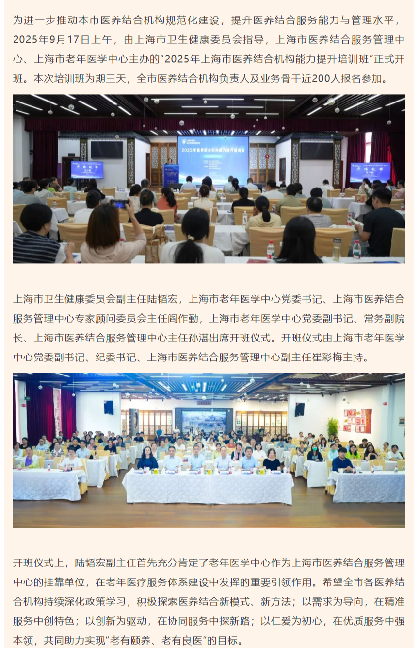 提升服务硬实力,推动医养高质量——2025年上海市医养结合机构能力提升培训班正式开班