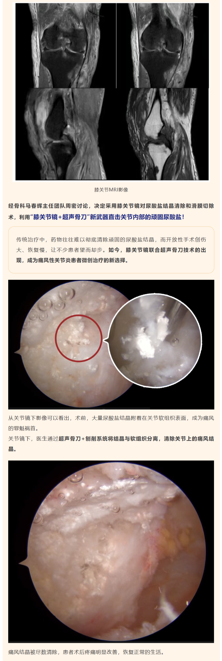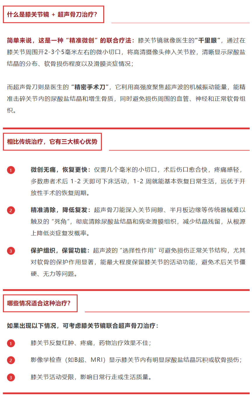 毫米级切口、精准切除、快速恢复|膝关节镜+超声骨刀,帮中老年人缓解痛风!