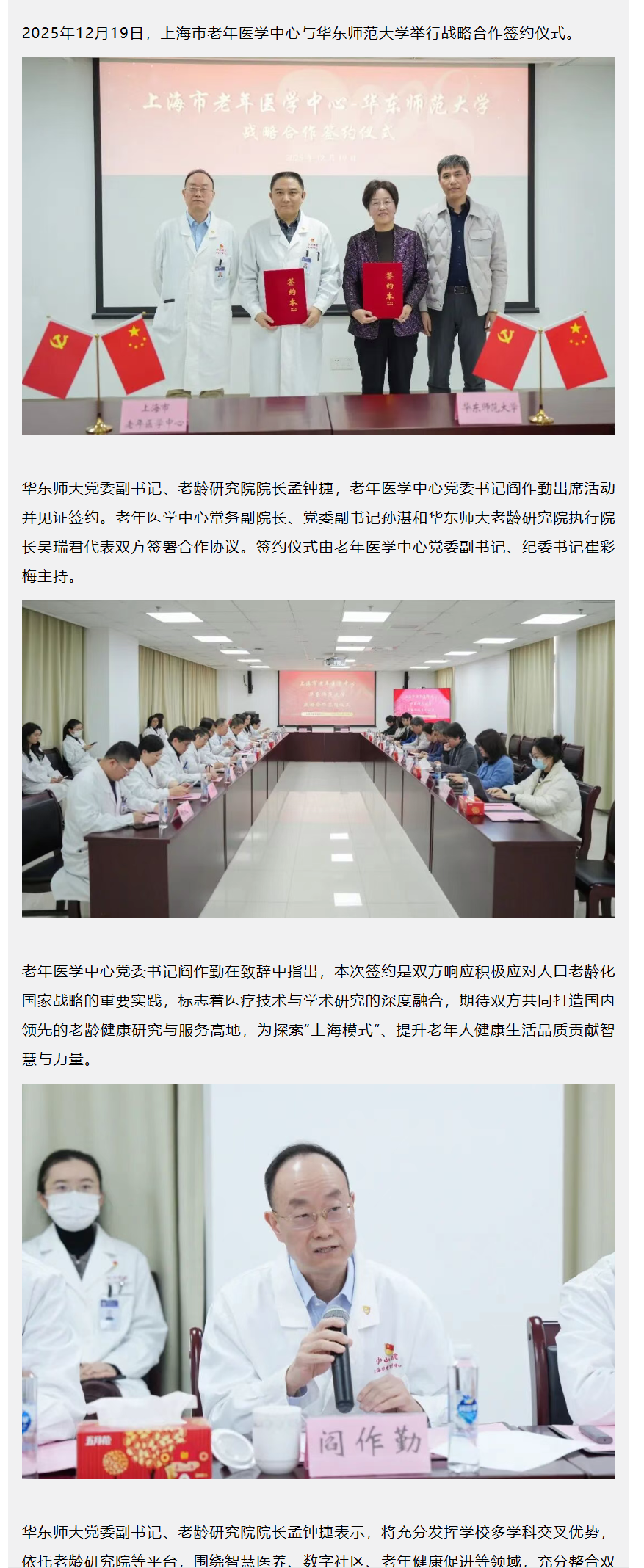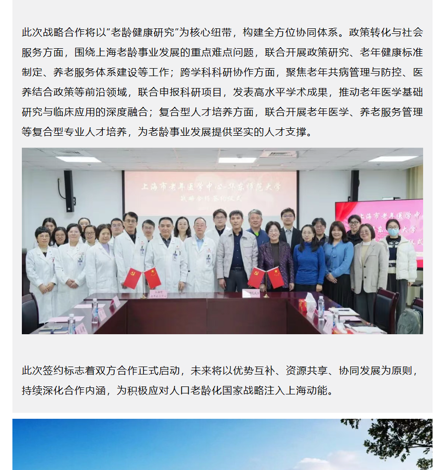 医校协同深耕老龄研究 双向赋能共筑健康高地|上海市老年医学中心与华东师范大学战略合作签约仪式顺利举行