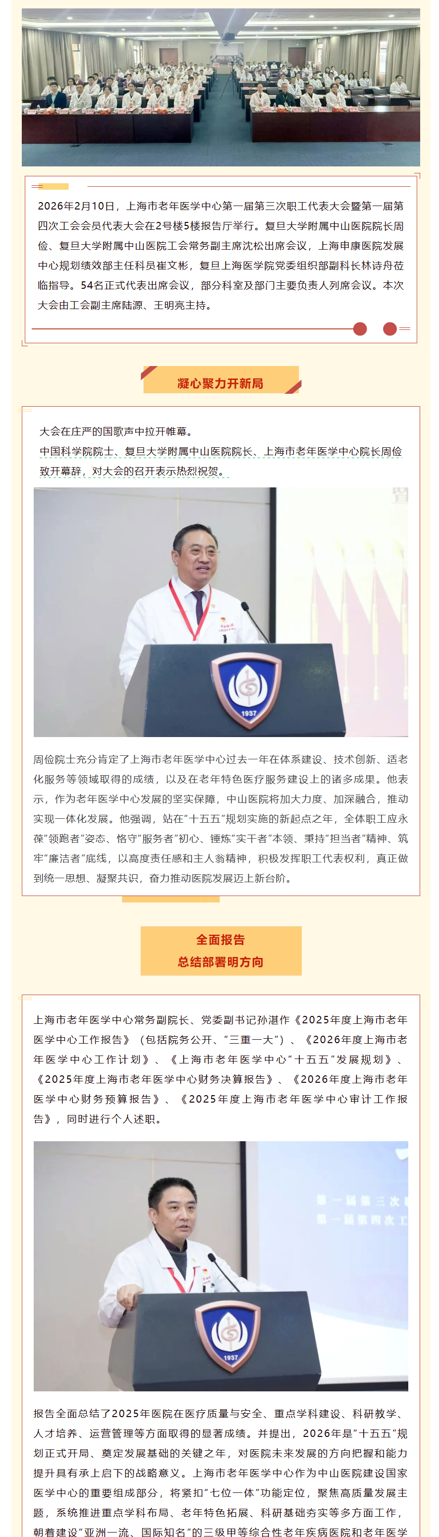 凝心绘蓝图 聚力谱新篇 | 上海市老年医学中心第一届第三次职工代表大会暨第一届第四次工会会员代表大会顺利召开