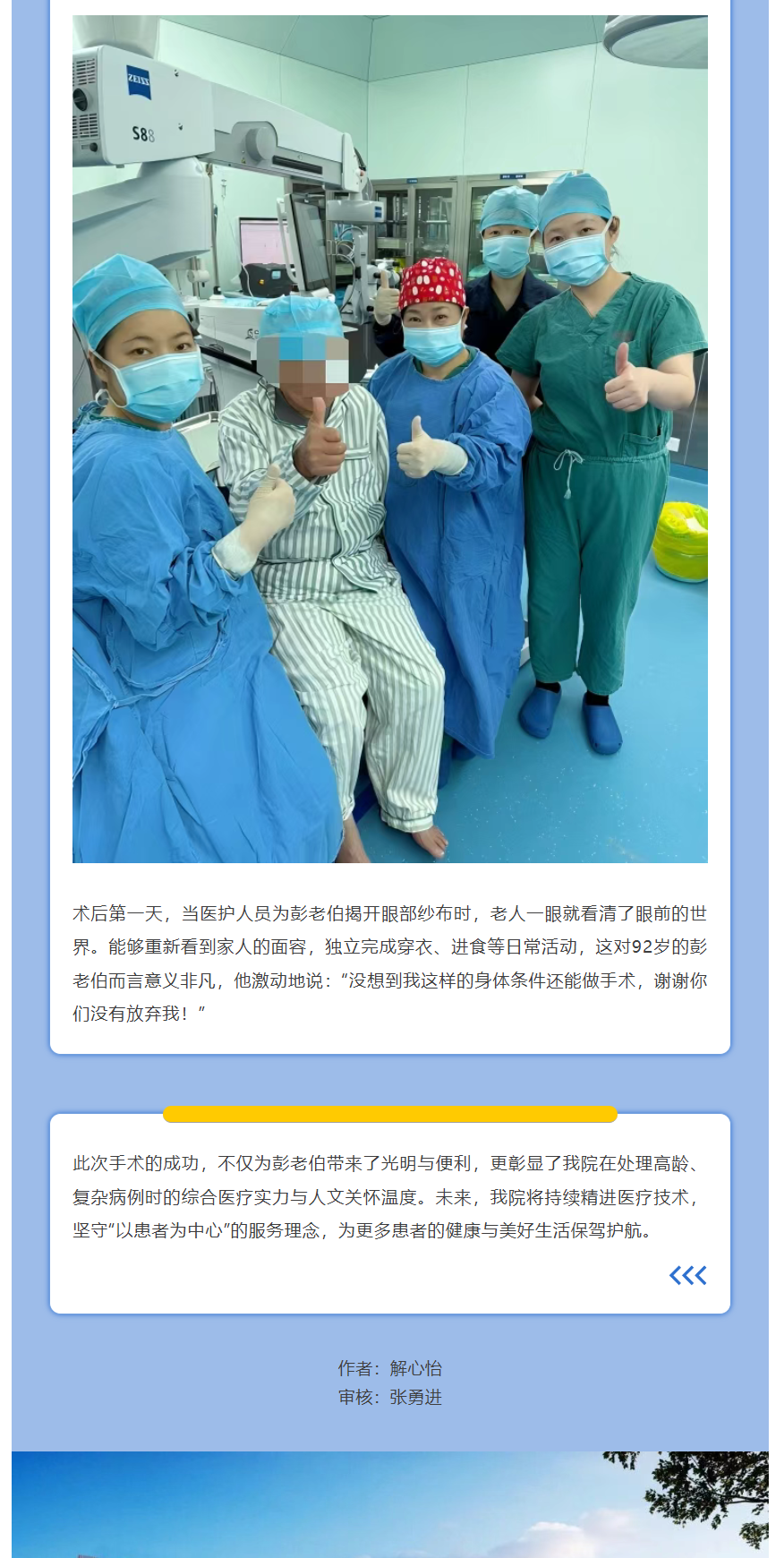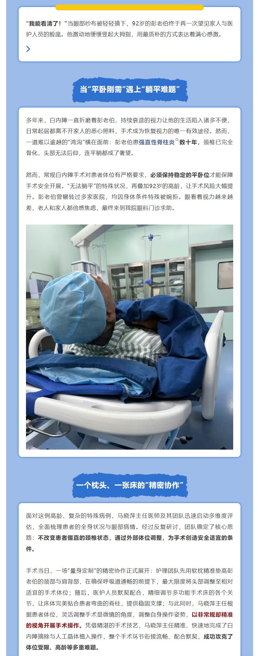 突破体位限制!92岁“无法平躺”高龄患者,在我院重见光明