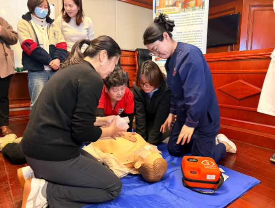 这正是“梅美与共 医路同行”——2026年上海市老年医学中心心肺复苏培训活动的真实一幕。活动由上海市老年医学中心党委与梅陇镇党群服务中心、梅陇镇综合党委和上海众欣发展有限公司联合举办,吸引了70余位社区居民和志愿者参加,活动在商务楼宇举办,不少白领也利用午休时间赶来参加学习。